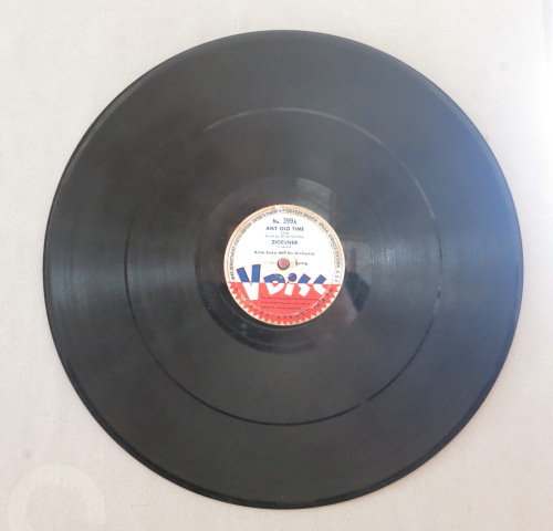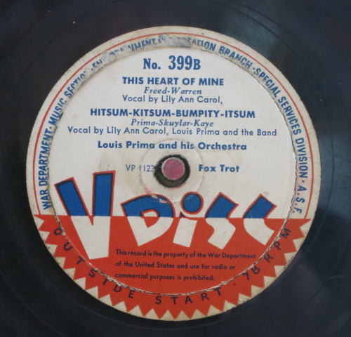 V-Disc was a record label founded during World War II through a special agreement between the US government and various private US record companies. Many well-known Schager singers, swing big bands and dance music orchestras of the time recorded special V-Disc records. These 12-inch 78 rpm records (material: vinyl or shellac) were created between 1943 and 1949. The “V” stands for “Victory”.