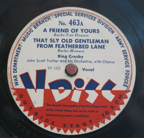 V-Disc war ein Plattenlabel, das während des Zweiten Weltkriegs durch eine besondere Vereinbarung zwischen der US-Regierung und verschiedenen privaten US-Plattenfirmen gegründet wurde. Viele bekannte Schager-Sänger, Swing Big-Bands und Tanzmusik-Orchester der damaligen Zeit nahmen spezielle V-Disc-Platten auf. Diese 12-Zoll-Schallplatten mit 78 U/min (Material: Vinyl oder Schellack) wurden zwischen 1943 und 1949 erstellt. Das „V“ steht für „Victory“.