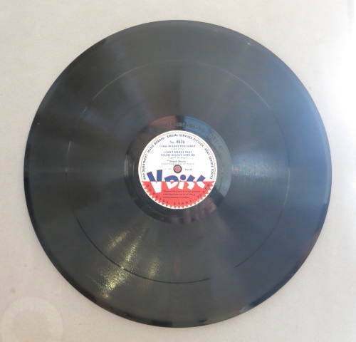V-Disc was a record label founded during World War II through a special agreement between the US government and various private US record companies. Many well-known Schager singers, swing big bands and dance music orchestras of the time recorded special V-Disc records. These 12-inch 78 rpm records (material: vinyl or shellac) were created between 1943 and 1949. The “V” stands for “Victory”.