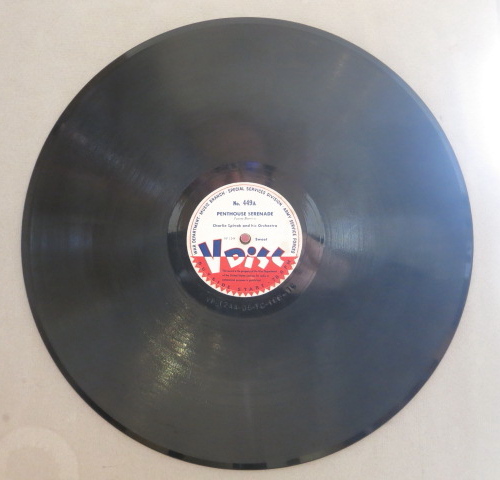 V-Disc was a record label founded during World War II through a special agreement between the US government and various private US record companies. Many well-known Schager singers, swing big bands and dance music orchestras of the time recorded special V-Disc records. These 12-inch 78 rpm records (material: vinyl or shellac) were created between 1943 and 1949. The “V” stands for “Victory”.