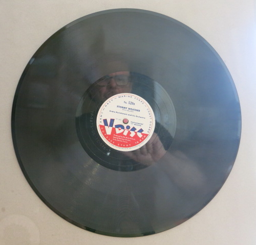 V-Disc was a record label founded during World War II through a special agreement between the US government and various private US record companies. Many well-known Schager singers, swing big bands and dance music orchestras of the time recorded special V-Disc records. These 12-inch 78 rpm records (material: vinyl or shellac) were created between 1943 and 1949. The “V” stands for “Victory”.