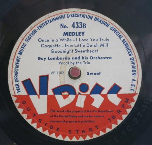 The records were sent to soldiers stationed abroad for morale boosting and entertainment. From October 1943 to May 1949, eight million 12-inch vinylite discs were delivered to deployed U.S. forces. After the V-Disc program ended in 1949, the armed forces set about complying with the original AFM (“American Federation of Musicians”) requirement that the recordings not be used for commercial purposes or destroyed.