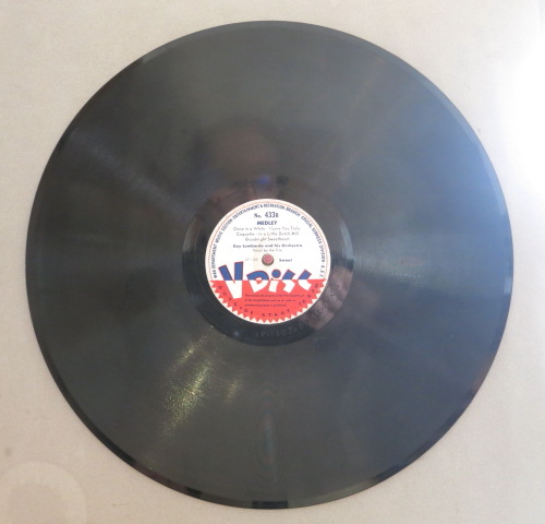 V-Disc was a record label founded during World War II through a special agreement between the US government and various private US record companies. Many well-known Schager singers, swing big bands and dance music orchestras of the time recorded special V-Disc records. These 12-inch 78 rpm records (material: vinyl or shellac) were created between 1943 and 1949. The “V” stands for “Victory”.