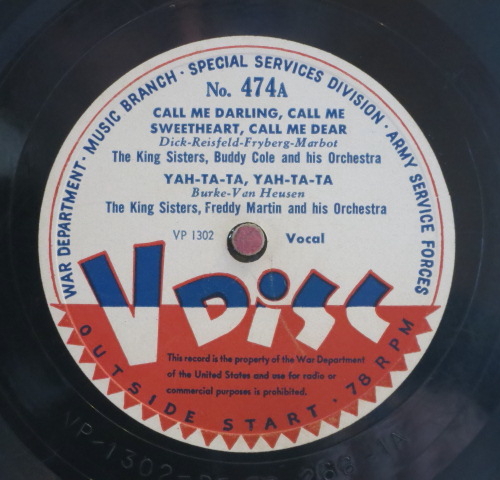 V-Disc war ein Plattenlabel, das während des Zweiten Weltkriegs durch eine besondere Vereinbarung zwischen der US-Regierung und verschiedenen privaten US-Plattenfirmen gegründet wurde. Viele bekannte Schager-Sänger, Swing Big-Bands und Tanzmusik-Orchester der damaligen Zeit nahmen spezielle V-Disc-Platten auf. Diese 12-Zoll-Schallplatten mit 78 U/min (Material: Vinyl oder Schellack) wurden zwischen 1943 und 1949 erstellt. Das „V“ steht für „Victory“.