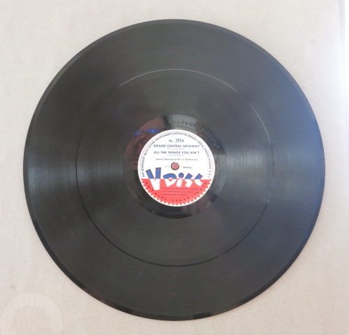V-Disc was a record label founded during World War II through a special agreement between the US government and various private US record companies. Many well-known Schager singers, swing big bands and dance music orchestras of the time recorded special V-Disc records. These 12-inch 78 rpm records (material: vinyl or shellac) were created between 1943 and 1949. The “V” stands for “Victory”.