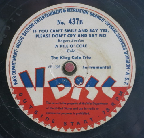 The records were sent to soldiers stationed abroad for morale boosting and entertainment. From October 1943 to May 1949, eight million 12-inch vinylite discs were delivered to deployed U.S. forces. After the V-Disc program ended in 1949, the armed forces set about complying with the original AFM (“American Federation of Musicians”) requirement that the recordings not be used for commercial purposes or destroyed.